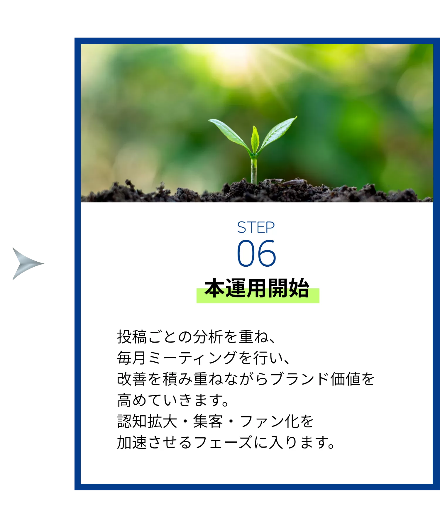 「フォロワーが増えるだけ」で終わらせず、「目標を実現するSNS運用」の導線作りを徹底に行います。
