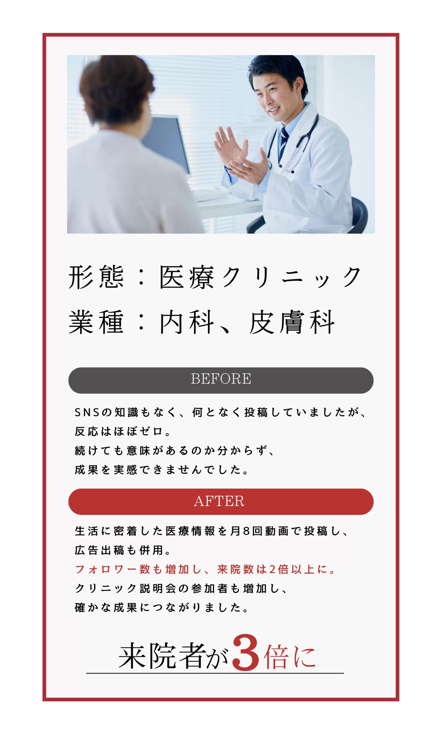 患者が「行ってみたい」と思えるSNS運用で、クリニックの来院促進を実現します。